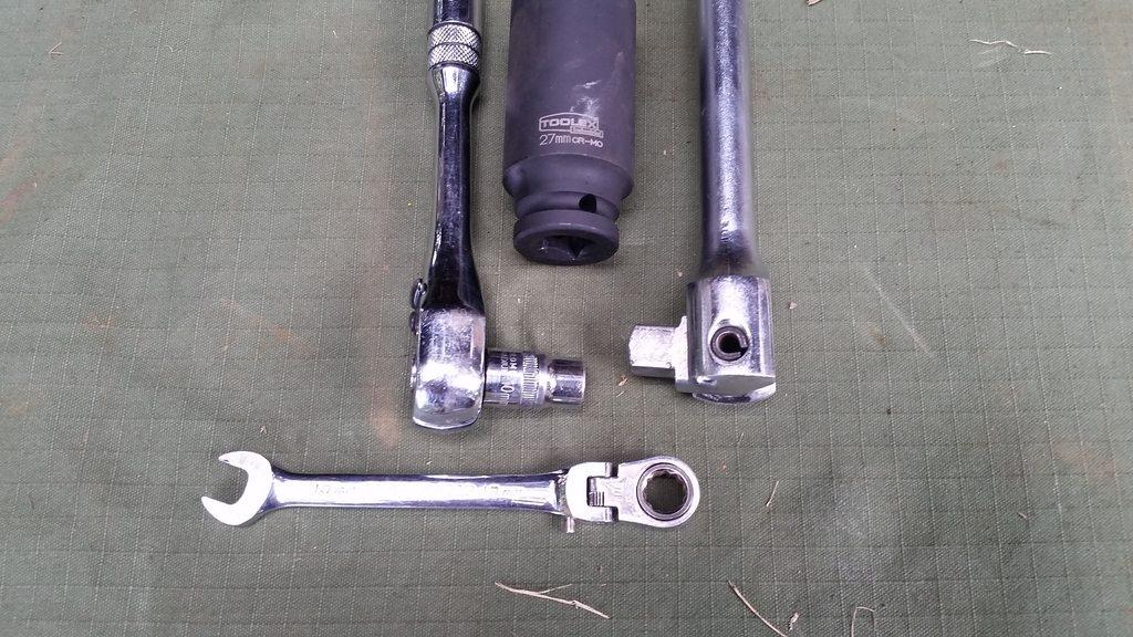 Gather your tools- for removal, a 10mm spanner and a 27mm socket for the wheel nuts are all that is needed.