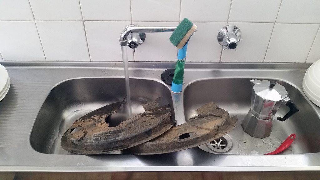 Today I decided to remove the disc brake stone shields and get a stiffy. On the shields, that is.