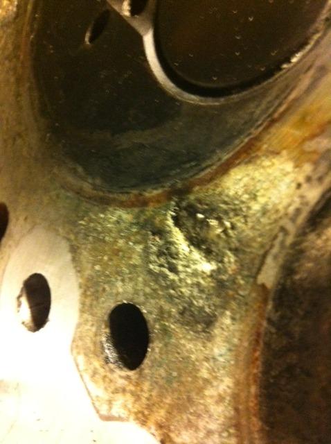 Got to scrapping back the head last night and I could have a problem with some corrosion where two of those triangular water ports meet the head.