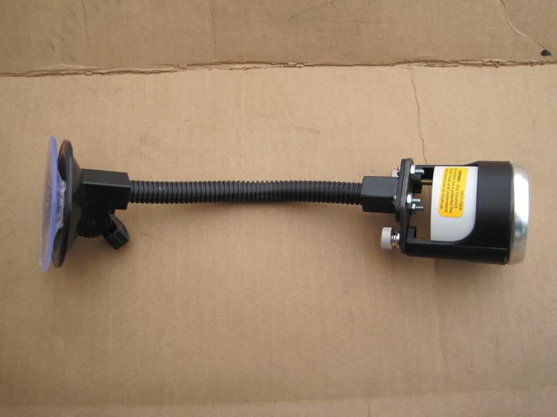 The set up comprises (3) parts, firstly the pressure gauge which was mounted on a modified cheapo suction cup type cell phone holder for quick installation and removal: