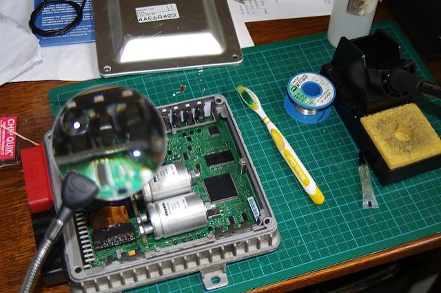 I initially had a bit of trouble getting the chip quik to wet all the pins. The surface of the board is covered with a sticky coating which I guess protects against oil and water to a degree. After good work over with isopropyl alcohol and a tooth brush I was able to get the chip quik to wet and chip free from the board. Not quite as smooth sailing as the tutorial videos but fairly close. Considering I was envisaging cutting the leg and then desoldering them individually this much quicker and cleaner.