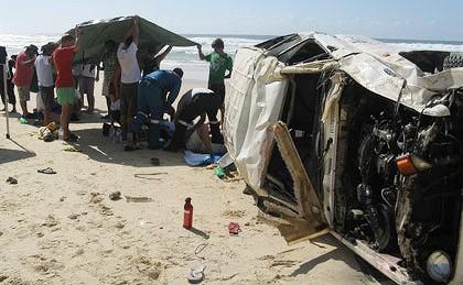 The nine other backpackers in the car were also hurt when the driver swerved to avoid a wave, with two receiving spinal injuries.