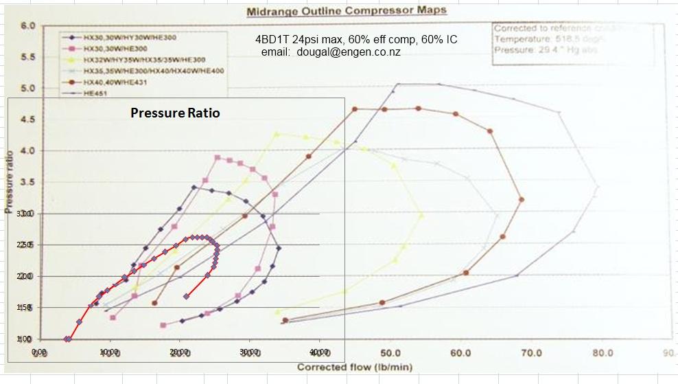 Now here is where it gets very interesting. That loop shaped plot of PR vs Flow was done to overlay on available compressor maps.
