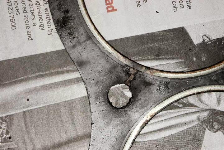 One head gasket had burned through to the outside world and was letting the engine emit chirping sounds. The other head gasket was on the way to doing the same thing