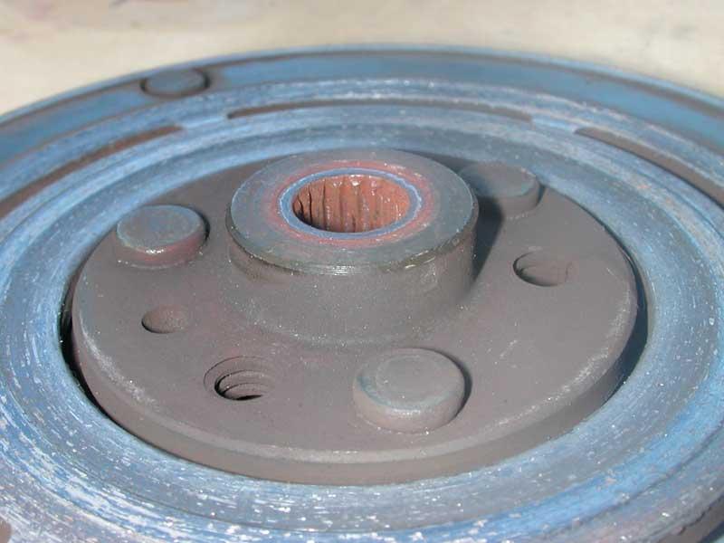 Following a suggestion from Scouse, I pulled the clutch off today, put it in the lathe, and machined off 25 thou from the back of the clutch spigot. That reduced the air gap back to within spec (0.35-0.65mm) and all is well once more.