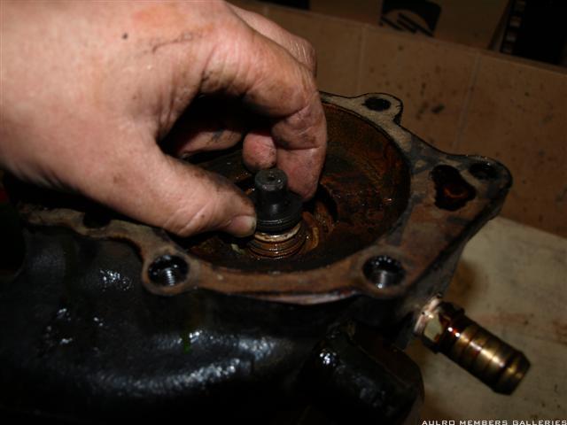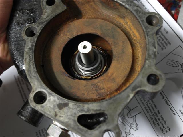 Sorry no photo of this step, but the secondary seal comes out the bearing side, and the main seal comes out the impeller side.
