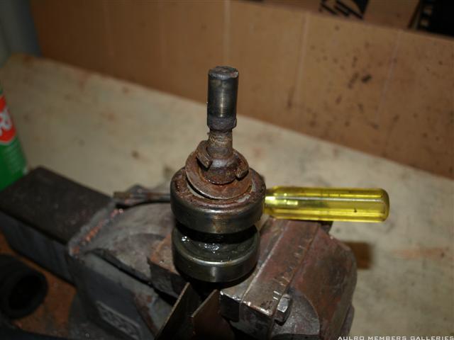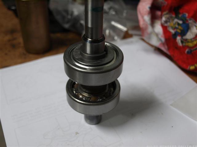 In my case the shaft was badly corroded and would be replaced, along with the circlip, spacer washer and bearings, but I still needed to disassemble to re-use the spacer tube between the bearings.