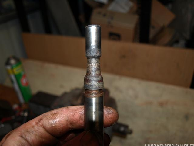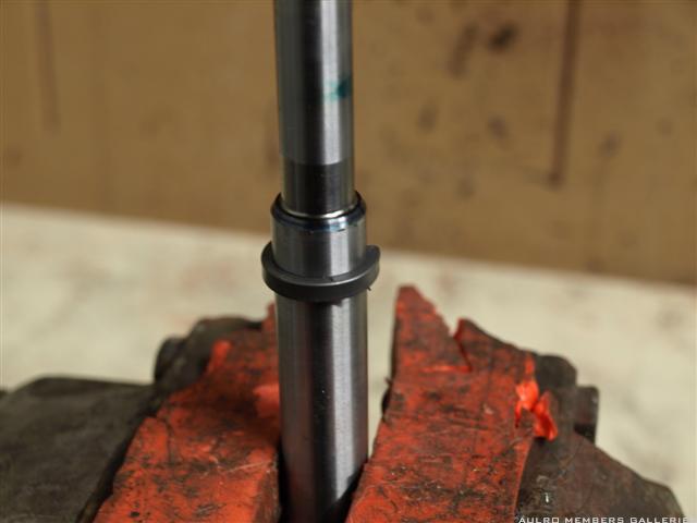 Old corroded shaft compared to the new one. I fitted the new circlip by squeezing it on with a large pair of pliers.