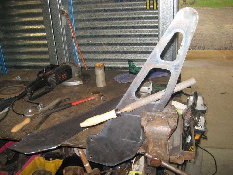 When I was happy with the post design I just oxy cut them from some 5mm plate, ground up and filed the center cutouts. Laser cutting would be great but expensive for one offs, if I was making a few I would use laser cutting. Tip, spot weld both posts together then grind to shape to get them both the same, then seperate.
