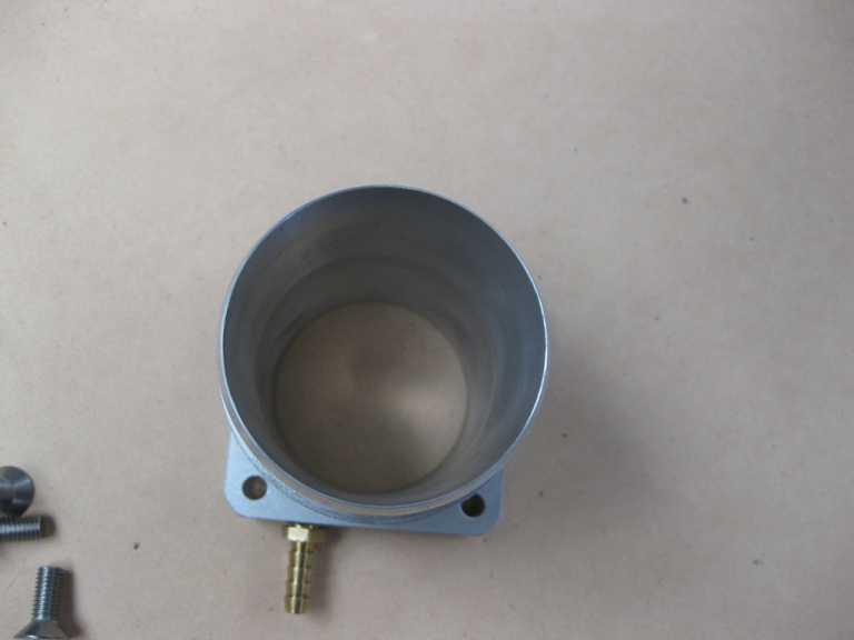 The inlet has this 3 bolt flange rather than a spiggot like the original.