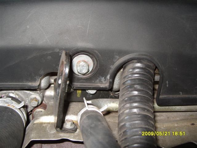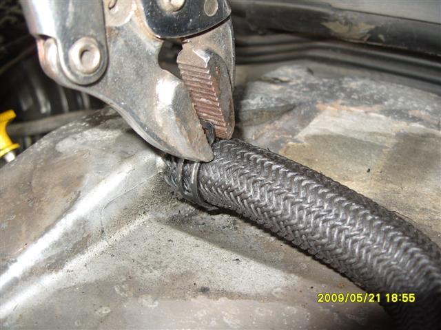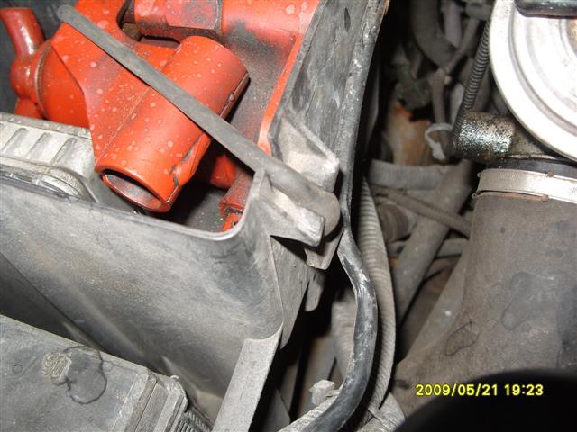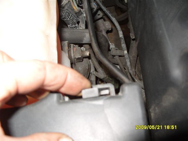 With a pair of pliers or mole grips, compress the breather pipe fitting, disconnect the pipe and tuck it out of the way.