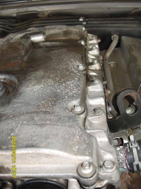 Clean the rocker housing gasket (or replace it). These gaskets are well known for leaking, so consider putting a very thin bead of RTV sealant on the old or new gasket before fitting it. The rocker cover bolts go through a restricted guide, so tighten them down until the bolt stops. Don't overdo it - the bolts are M5 and can shear or strip the thread.