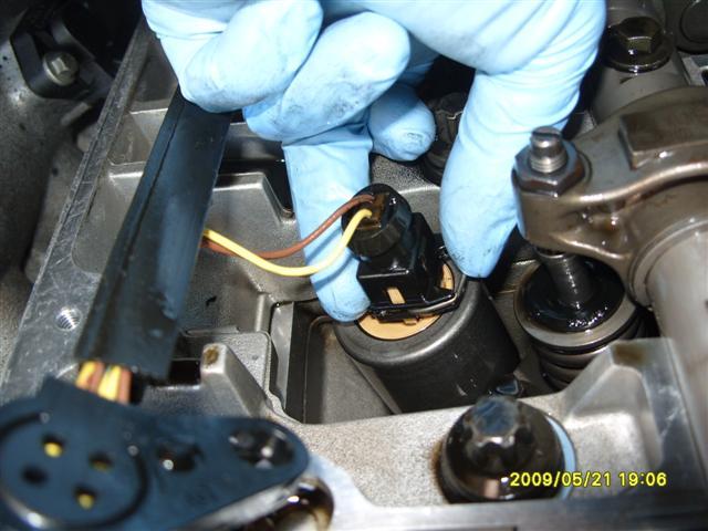 The injector wiring loom is plugged underneath the rocker shaft housing - squeeze the two locking tabs either side and pull the plug downwards.