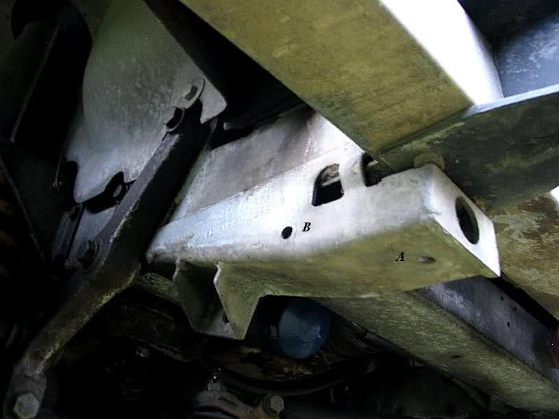 Note that bolt hole A in tiki's pic is usually the first place on a landie to rust out (non galvanised chassis of course..), so I would be wary using it as an attachment for a recovery point.