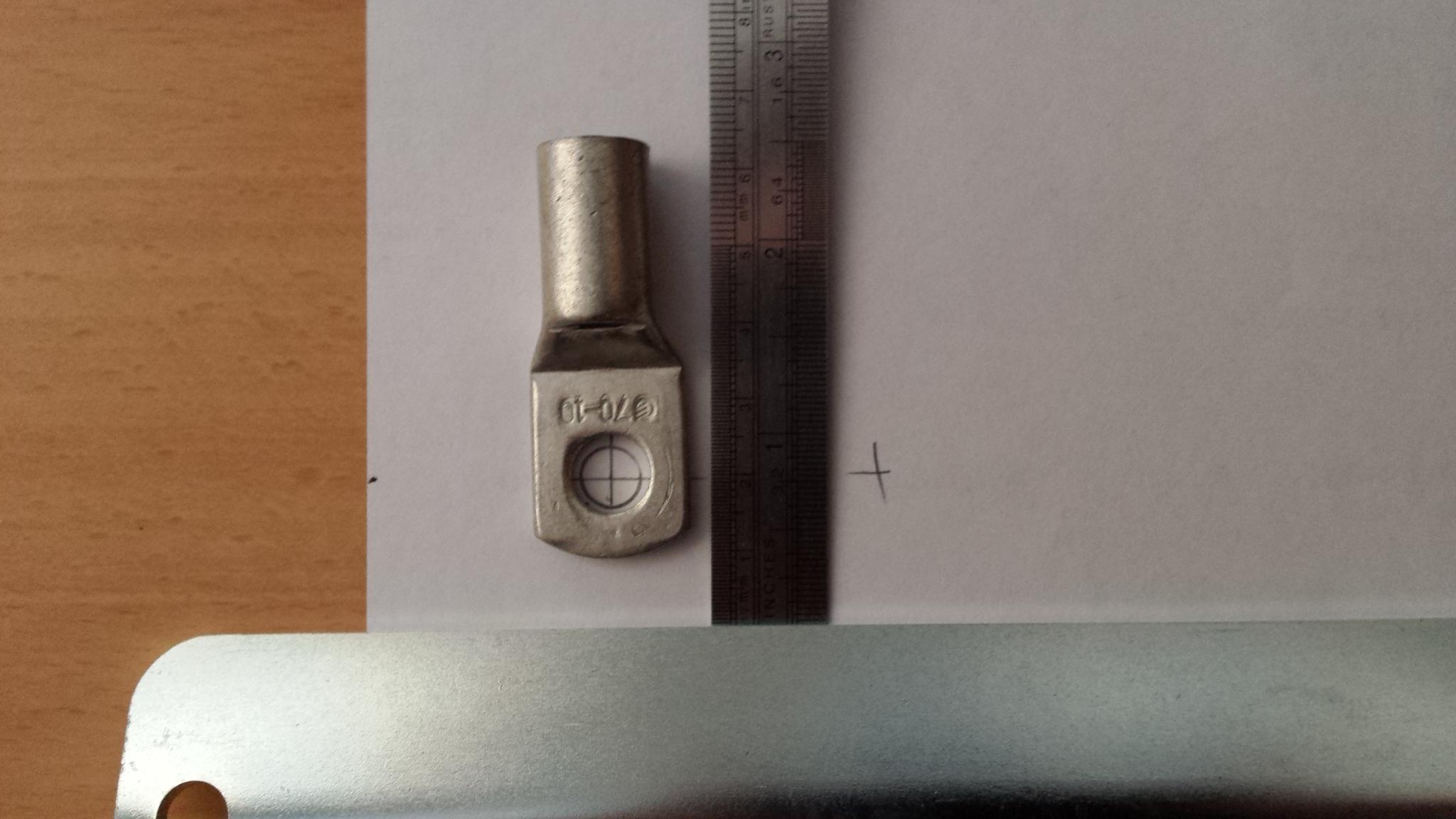 When max clearance is given to the positive, and Cabac 70mm2 cable with 10mm lug hole crimp lugs are used, and mounted parallel to the clamp, max 16mm clearance between lug and battery 5/16" post terminal is had.