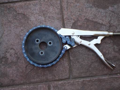 The locking pipe type pliers I got from supercheap for $10, and they are usefull in holding both WP & PS pulleys whilst undoing the bolts holding them to the pumps.