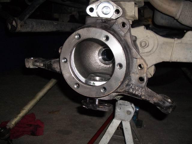 hub spanner of course, but LR sneakily use a 12 point 9/16 or 14mm bolt for the brake caliper. So you'll need a decent 12 point socket. Circlip pliers, blue loctite and, for the lower swivel pin a #40 torx. ( NEW Note: You don't have to undo the lower swivel pin to get the hub off, so forget about the torx) Last but not least, a 9/16 or 14mm ring spanner ( For the diff to swivel bolts ). Make sure it's a sidchrome or similar, you'll need it. ps: You'll also need somthing to measure the preload for the swivels - I used a a spring scale normally used to weigh fish)