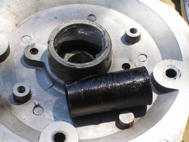 End plate of winch body. The black object is a abs plastic collar that connects the splined shaft of the motor with the bladed end of the winch drive shaft that goes to the gears at the other end. I was surprised when I found it, but then realised that it acts as a shear pin like on Trifor's.