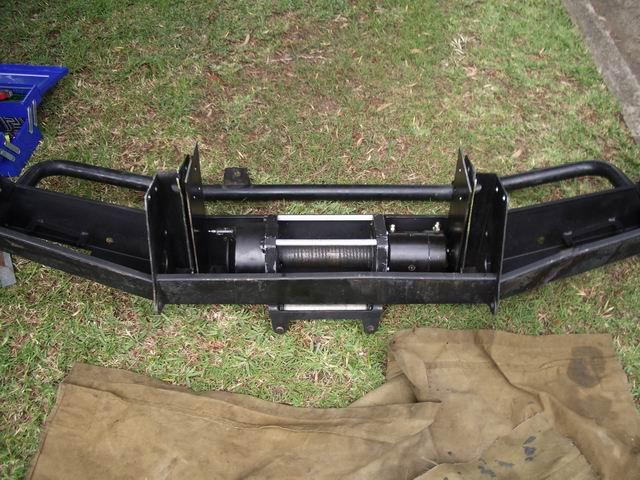 The bullbar appeared to be a normal TJM design. Made of 5mm steel, no cutouts for a winch, nor bracing. On some bullbars I inspected on other vehicles with winches, that's all you get. Even ARB bars only have a extra bit of 3mm plate reinforcement around the edges of the area the winch bolts to,not to the rails.