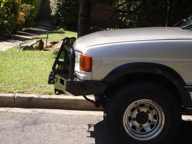 All on, and a beauty of a tip: A galvanised garbage tin is just the right height to rest the bullbar on so you can slip it onto the chassis rails. 'Cause it is heavy. (even for me)