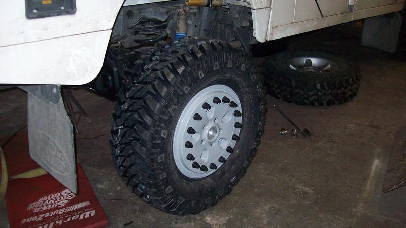 The wheel mounting on the new stub axle is drilled for 2 stud patterns. One pattern is 5 studs on 6.5" bolt circle diameter, to suit landrover wheels. The other pattern is 5 studs on 5.5" bolt circle diameter (I guess that would suit landcruiser, patrol etc. wheels).