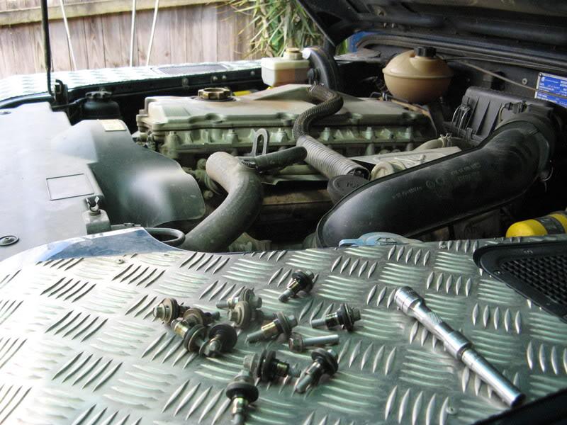 Remove all bolts holding top cover (easiest to remove the rear sound deadneing cover also)