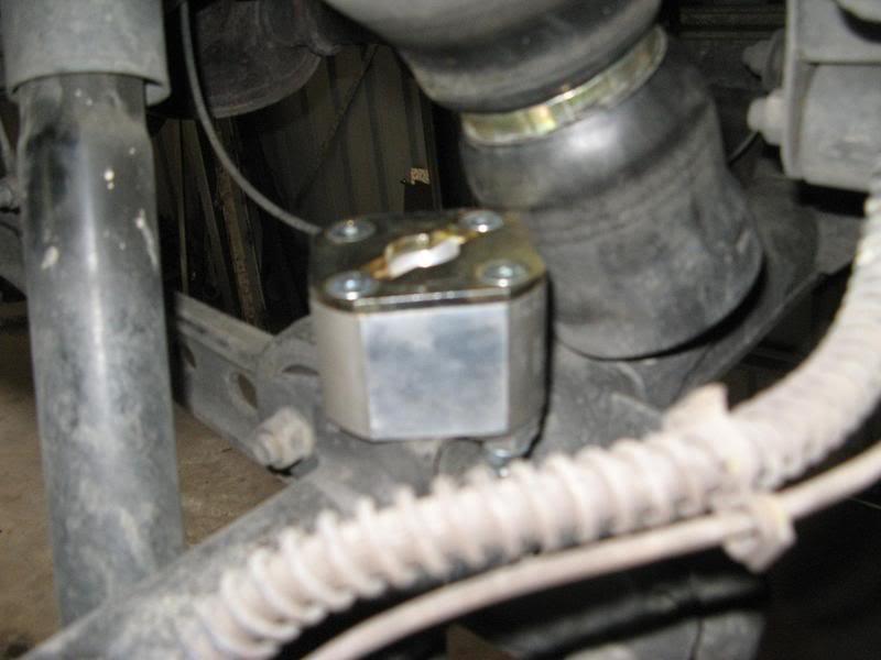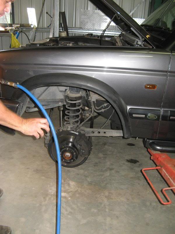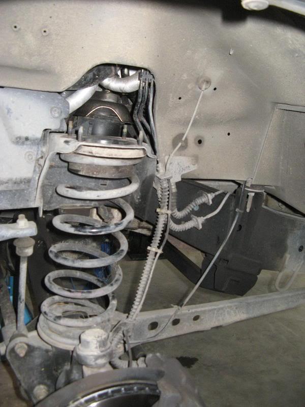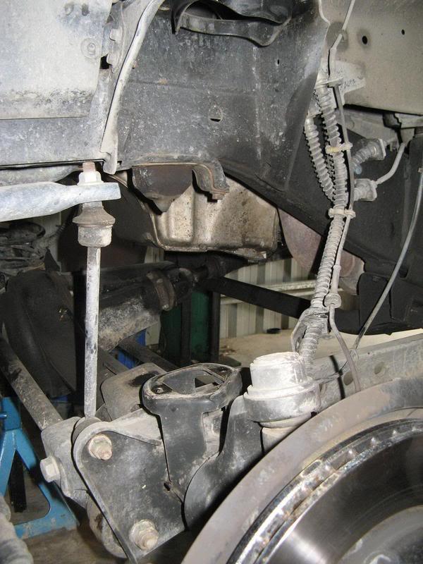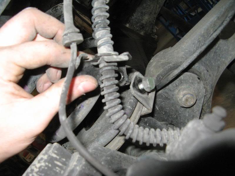 Now you need to fit the bracket to drop the brake hoses, so unbolt it: