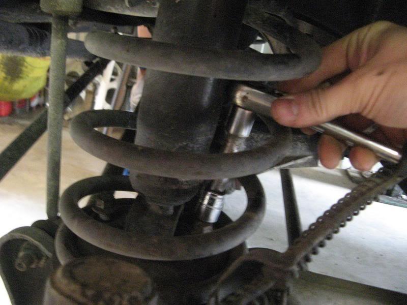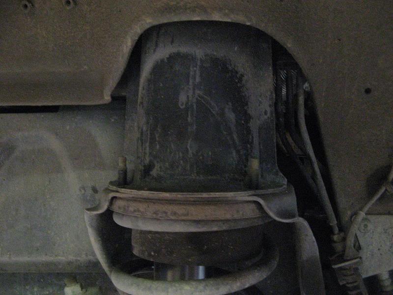 Jack up and remove front wheels. Let axle drop to lowest point.