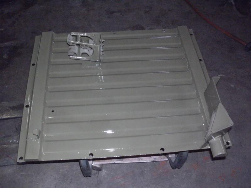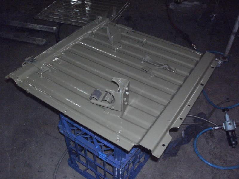sand blasting and then painting the plates that hold the rifles and some tools in the cabin behind the driver.
