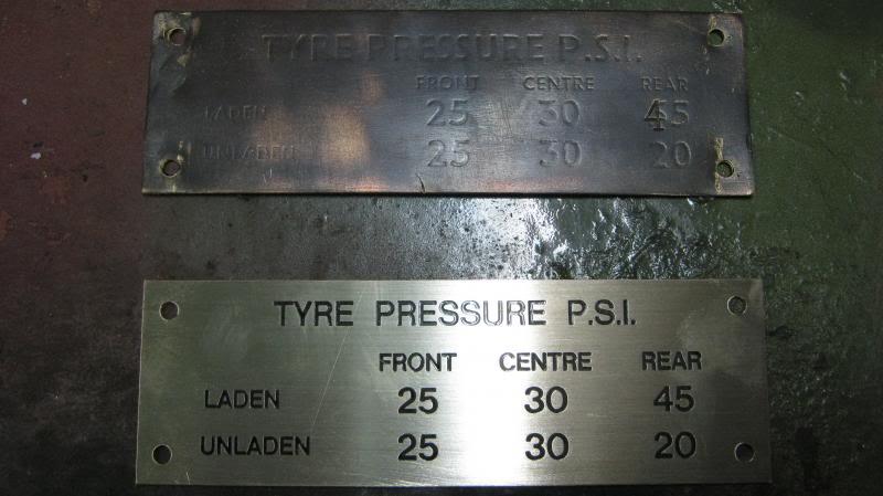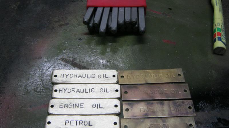 I am trying out the local trophy maker people to markout a new tyre pressure and crane operation plate in brass..............something which I cannot do with letter punches.