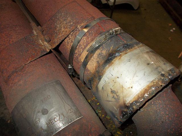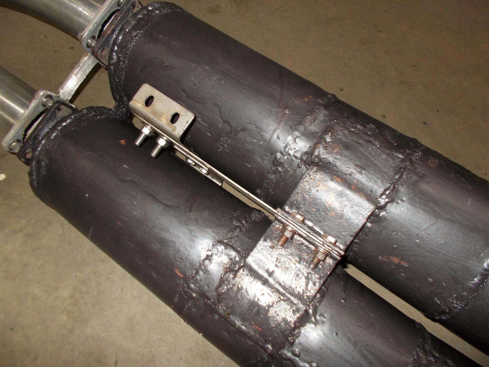 The plates that support the mufflers have been remade in stainless steel and it is a  clever set up which well supports them, but also allows movement for heat expansion.