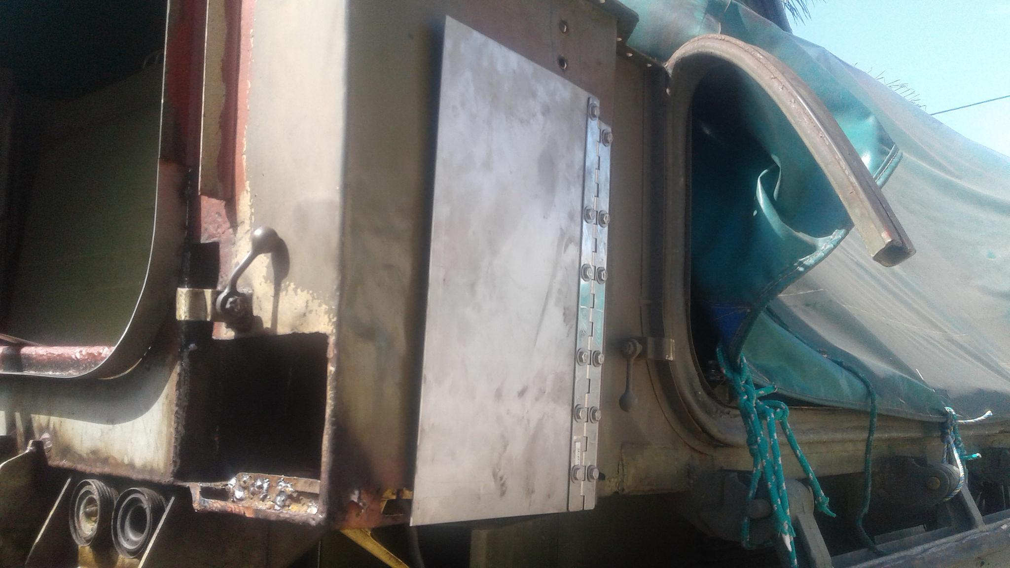 The above shows the little plate now welded over hollow tube which runs the width of the rear of the vehicle to stop water getting though and flooding the vehicle when swimming...........I am going to work things a little bit different to keep the strength in the muffler box.