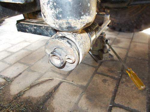 Extended lenght of new and old shocks front 101 Landrover by john smith, on Flickr