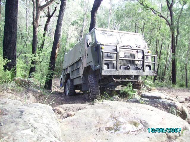 The pinzgauers lockers certainly do help! and the 2.5 petrol is a great motor in the bush plenty of down low torque and the 68:1 gear reduction and portal axles plus also an incredibly low center of gravity thanks to some smart work such as a motor laying on its side. It is also very strong and things such as drive shafts are all protected in in tube chassi.