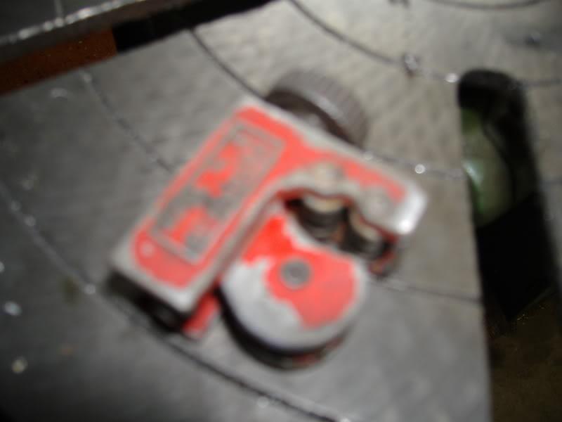 A mini pipe cutter is used to cut the excess pipe to avoid any filings falling inside the pipe.