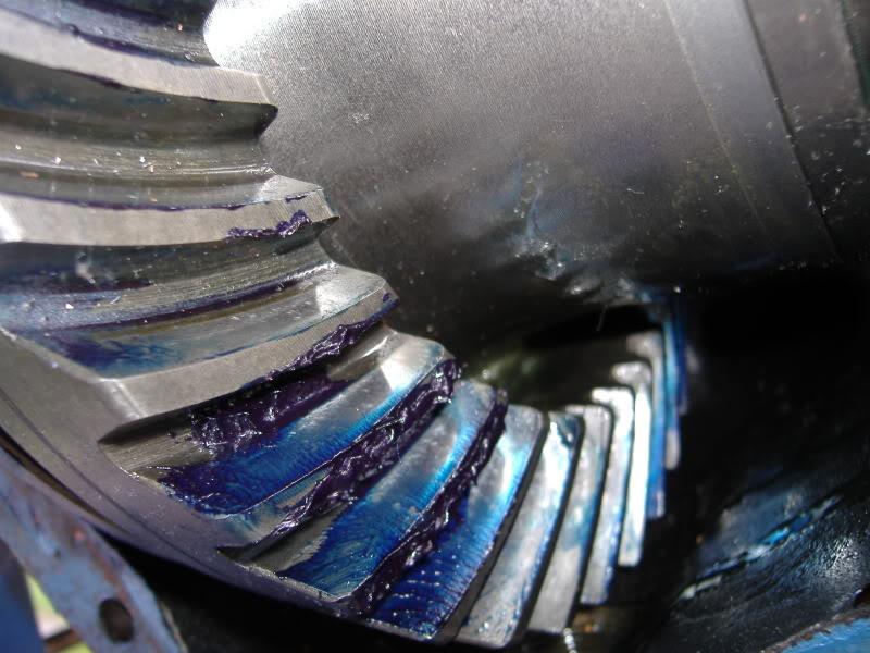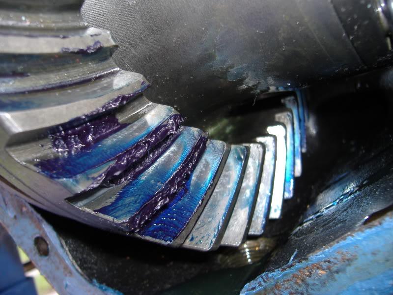 the crown wheel is bearing blued to check if the mesh is the same as it was as it came out in the first place.