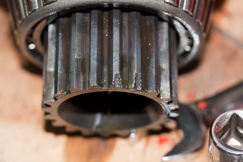 The only other damage I can find other seals and bearings is the CDL locking mechanism on the diff end. I don't think it will be a problem as the shifted lock gear sit on this all the time, makes me wonder how it happened though.