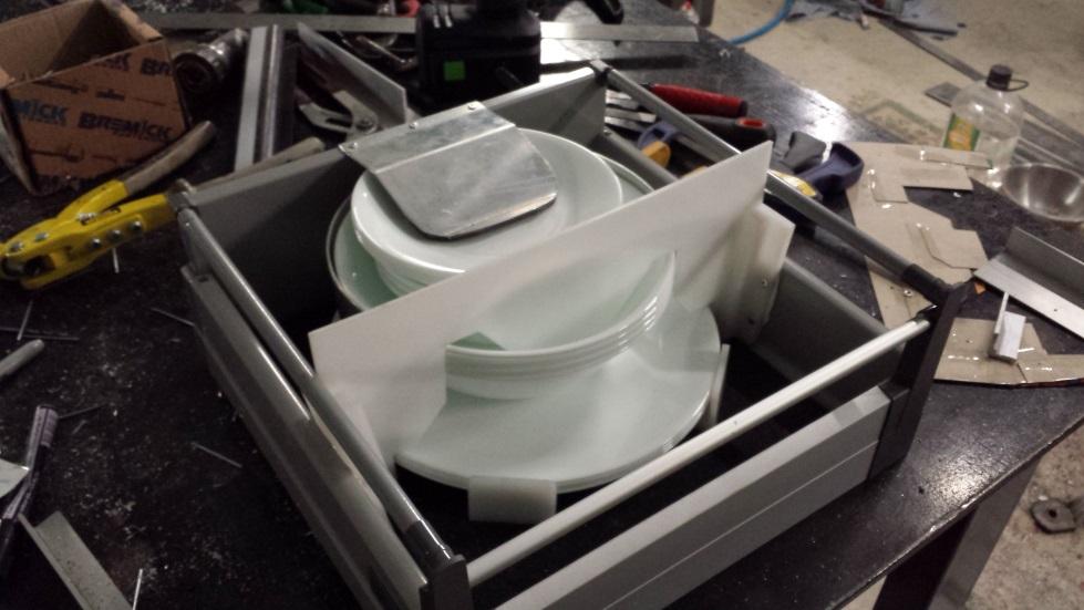 The area under the sink has been filled in with drawers and cupboard doors, so it looks a lot more finished: