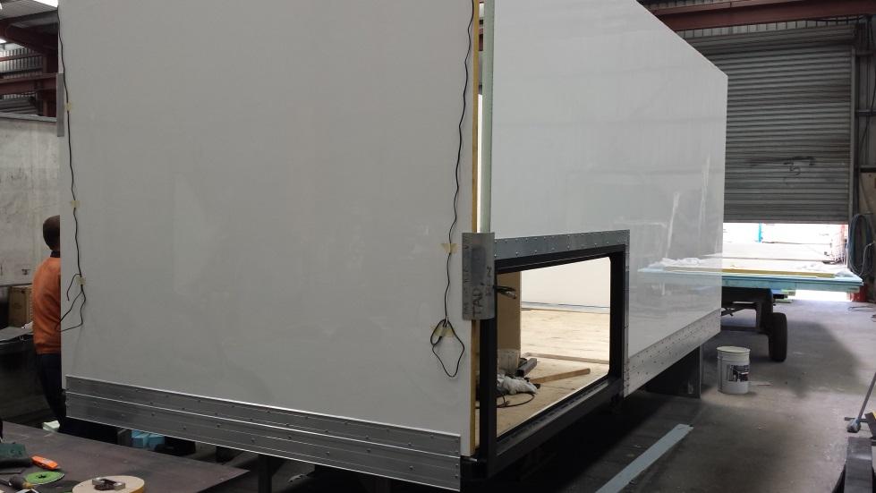 The top went on this week, so we've got a much better idea of how 'spacious' it's going to feel. I put up a post on the blog, but there's not a lot extra to see. This week, we're putting in the windows, and on Thursday it is booked into the paint shop to get the aluminium edging painted in 2-pack gloss white.