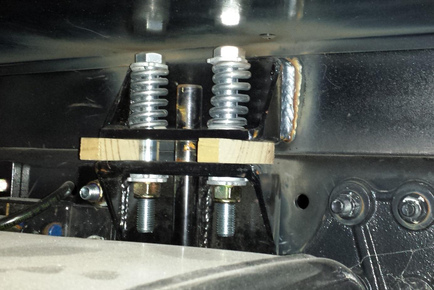 To follow up on how the two are fixed together, this is a shot of the spring brackets now welded to the canopy. The wood blocks keep the spacing even and they'll get taken out tomorrow.