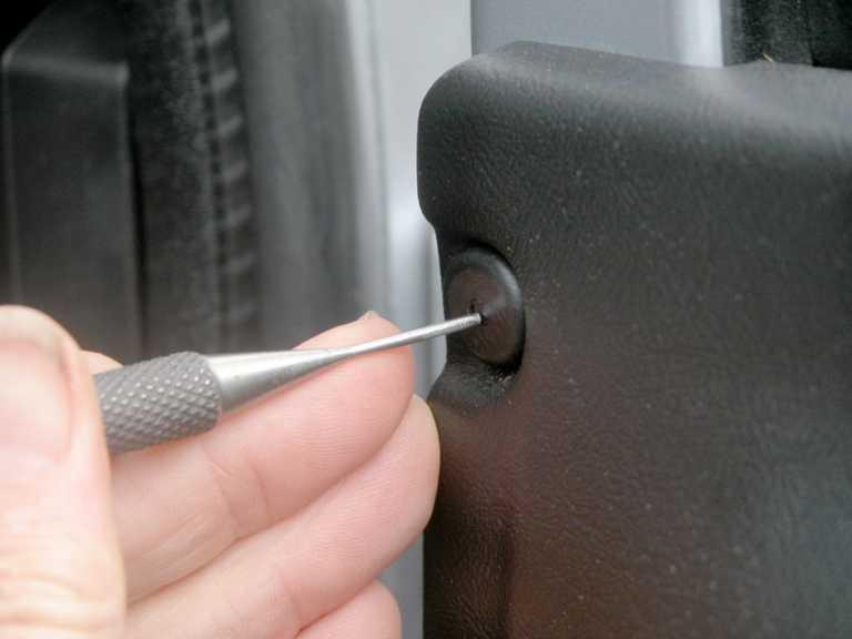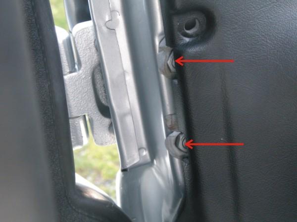 I removed the plastic pin holding the door trim in place, although on one side, I could have fitted my patented nut holders in place with out removing the pin.