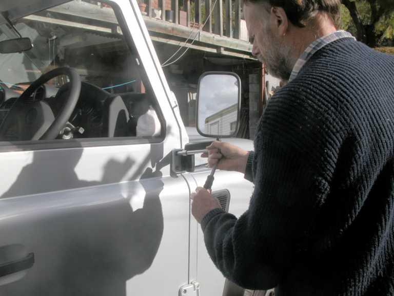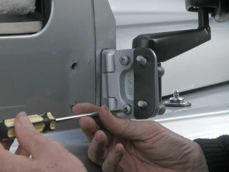 Replace the mirror arm with the new one, the original arm had grease over the locating spring so apply a similar amount of grease, tighten the screws, swing the hinge back and carefully reintroduce the hinge bolts back into the door and feel for the thread of you captive nut.