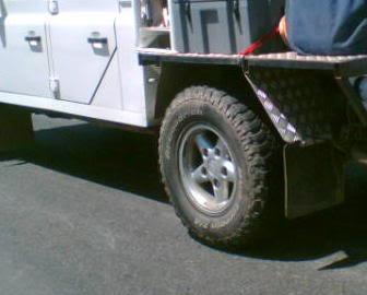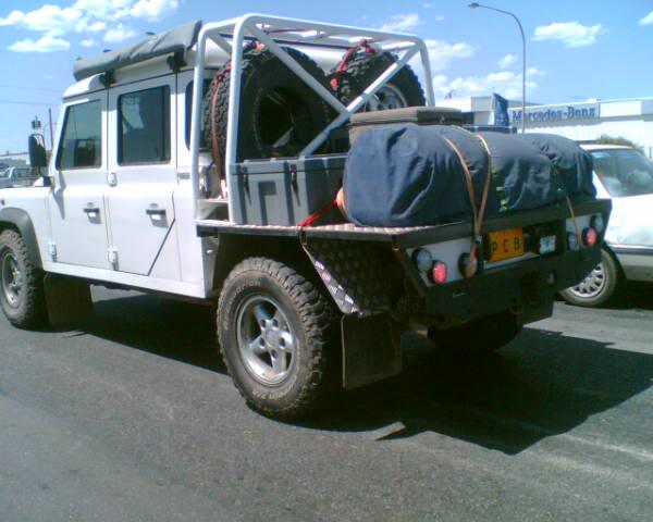 Ok, odd one really, I sighted a double cab 130 Defender heading north on South Road in Adelaide about a year ago. It had twin spare wheels behind the cab on a simple smart rear tray. It was running on BFG Mud Terains and some really nice 5 spoke alloys. These were very similar to the alloys found on early Disco 4 doors (rounded 5 spokes). These were much deeper though. I have a picture of the truck.. the joy of camera phones and being stationary at traffic lights! I would post the pic but the rear rego plate is visable.. The plate was yellow and consisted of three letters only (you might know this guy. I now have a 130 and am modeling mine on this truck as it looked good. Any wheel pictures welcome, and any ideas how to post the pic without offending would be helpfull. Thanks. Simon, Adelaide (ish)!