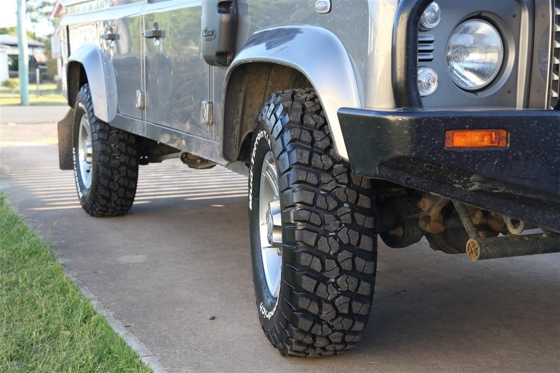 I still think the 285's suit the Defender especially with a 2" or 3" lift at the nose. It levels the hole thing up and gets rid of that 'saggy front' look. Geared it up a bit to... the speedo is now correct! Still can't seem to be able to get those nice big pics to come up like the post below! Computers are suppose to be simple!!!