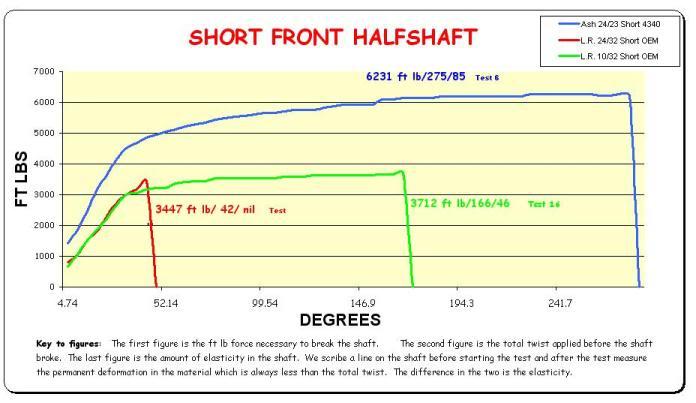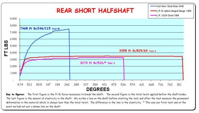 The graphs below show the results of the testing we have done on the front and rear landrover halfshafts.
