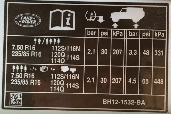 My 110 has placarded pressures from 35/35 unloaded and below 105kph up to 60/65 with a load of over one tonne and travelling over 120kph.