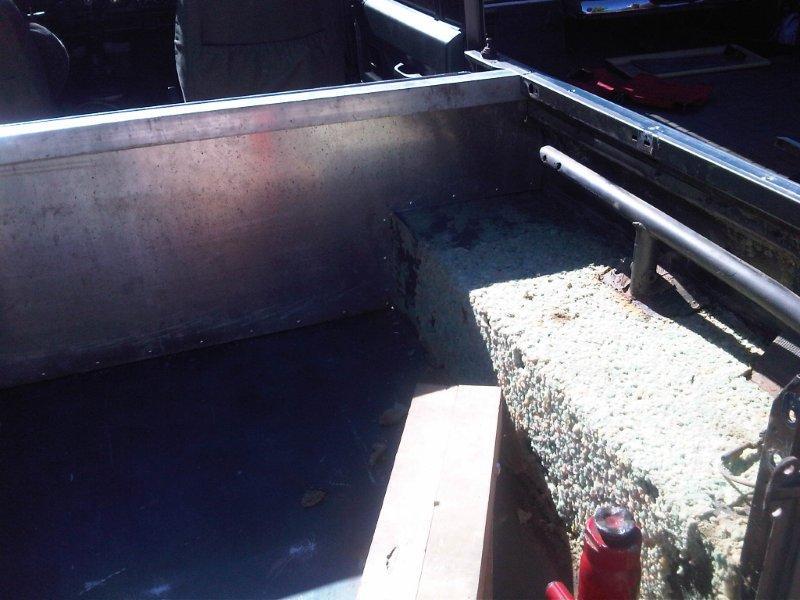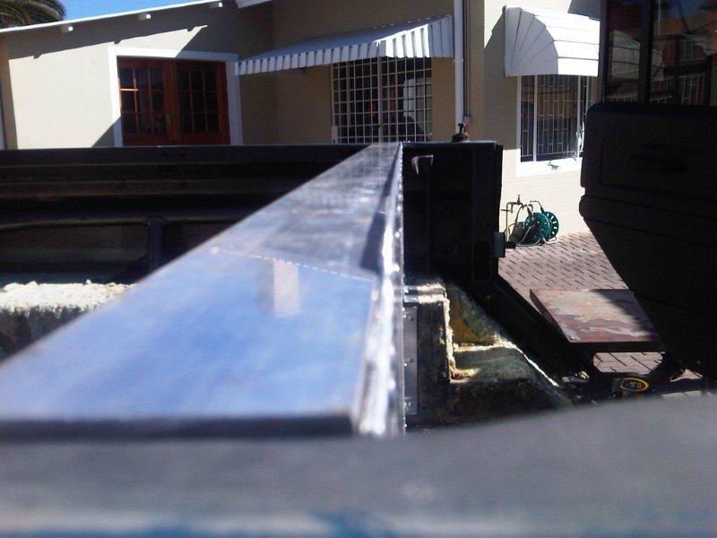 I used 50x50mm square tube for the top part where the cab would bolt on, and normal 1.5mm aluminium sheeting as per above measurements, this was all attached to the body with rivets using 25x25 angle aluminium.
