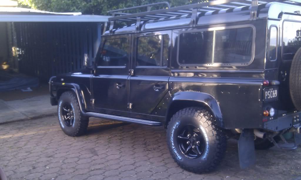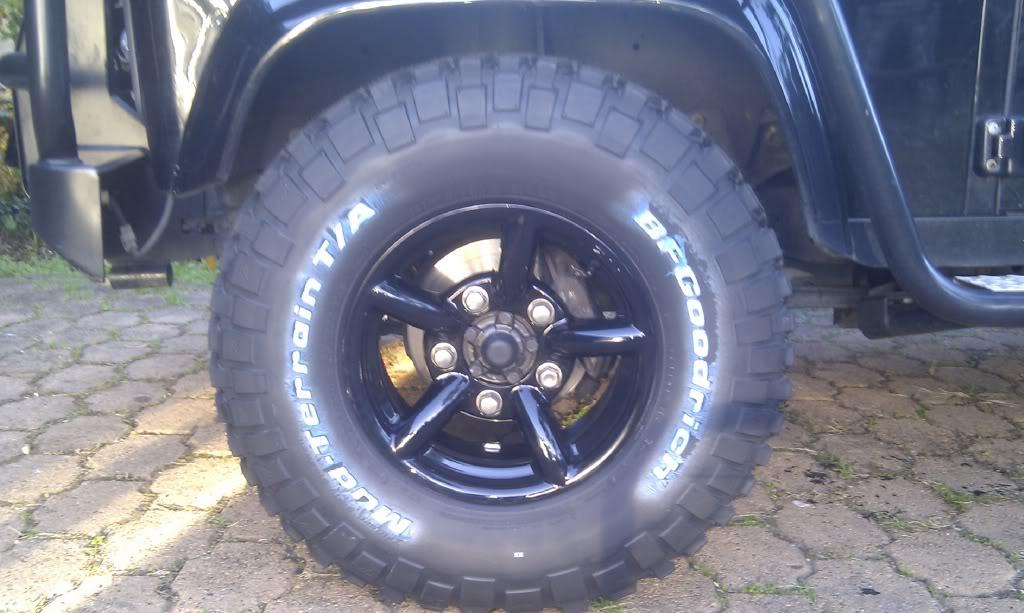 Well the new BFG KM2 finally arrived today, but only 4 came in, the other one is due on the 20th at the tyre place. So I am running around on 4 255/85/16 and a 235/85 spare for a week but could not wait, he wanted them out of the shop and I wanted them on the car.