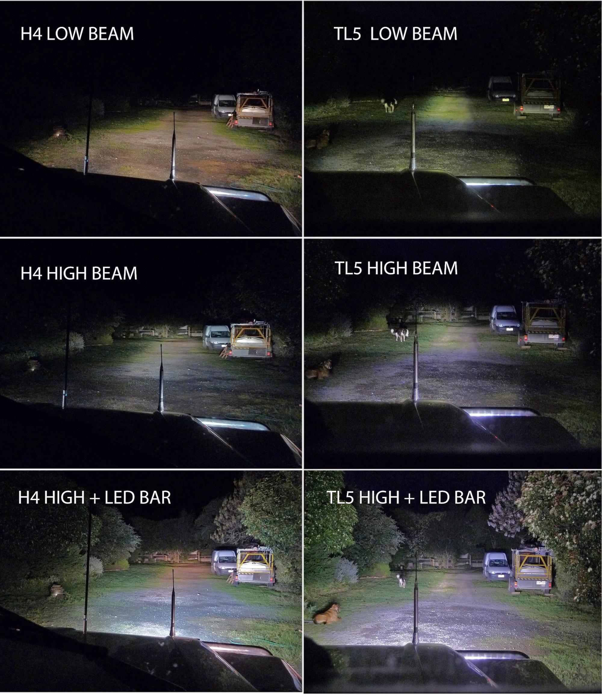 Agreed the Low Beams of the H4 is a better spread , The TruckLite Phase5 does have dark shadowy bits, If I'd known I'd have spent another $50 and got the Phase6 which fixes the problem, (6 LED's on Low beam plus better diffuser than the Phase 5 - 5 LED's on low) , Not such an issue when driving tho, (I'll upload some from the dashcam tomorrow)