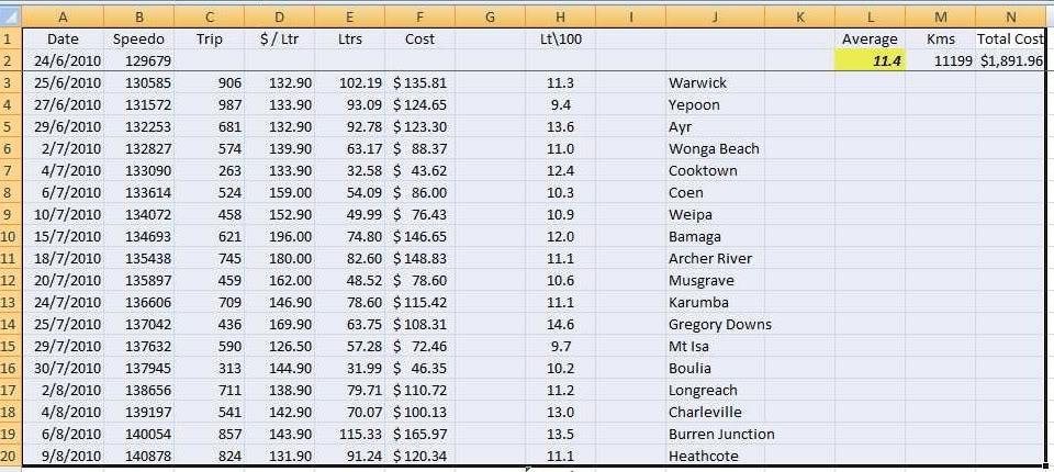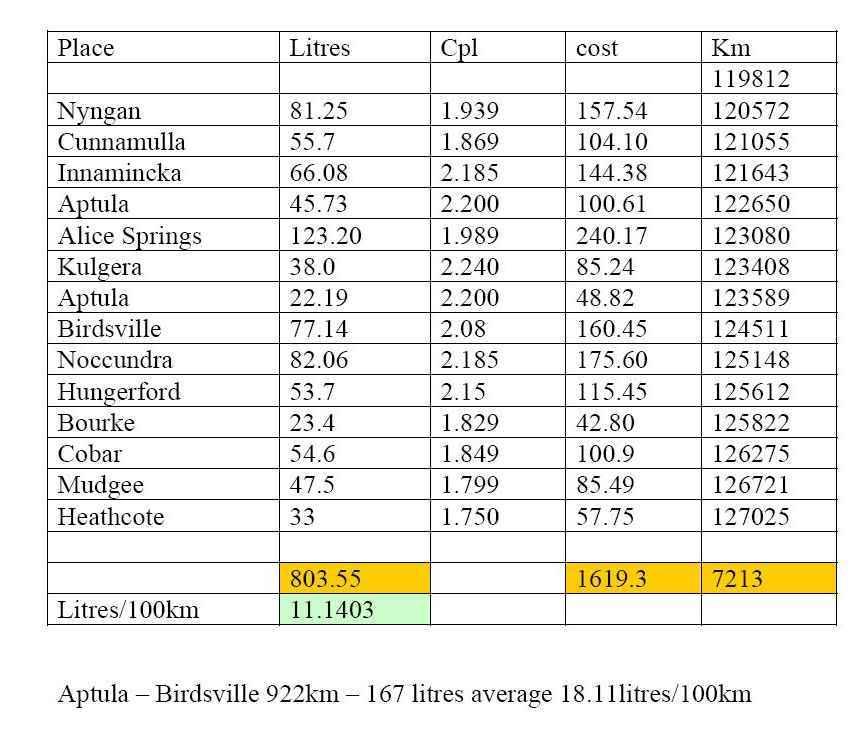 We used 444lt of fuel at an average of 11.22lt per 100km. (loaded for touring)